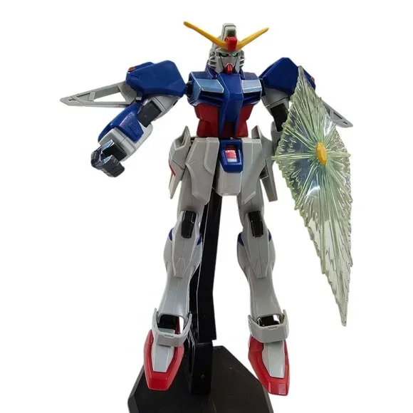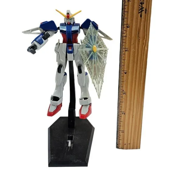 Bandai Mobile Suit Gundam 5" Anime Articulated Action Figure Toy On Stand- Pre-owned condition - Includes Shield and Stand - AS SHOWN - Normal signs of use - Will ship off stand for reassembly as shown in photo 8. - Approximate size: 5". - Please see all photos for further description and condition.