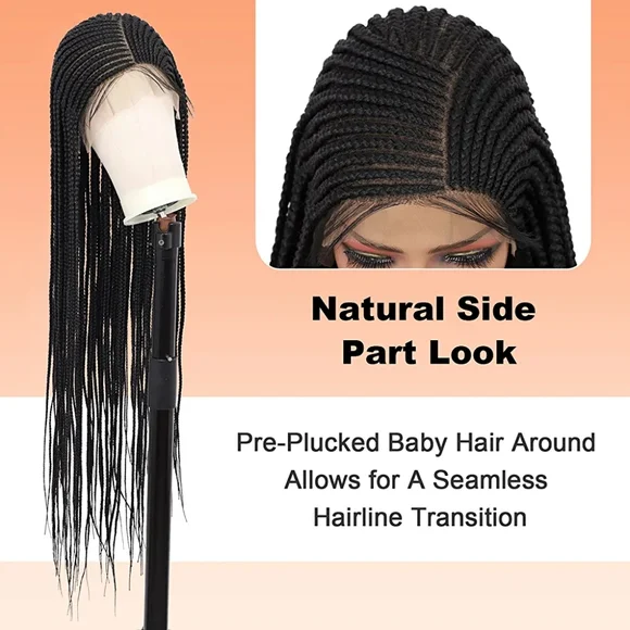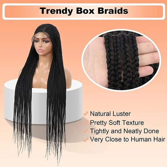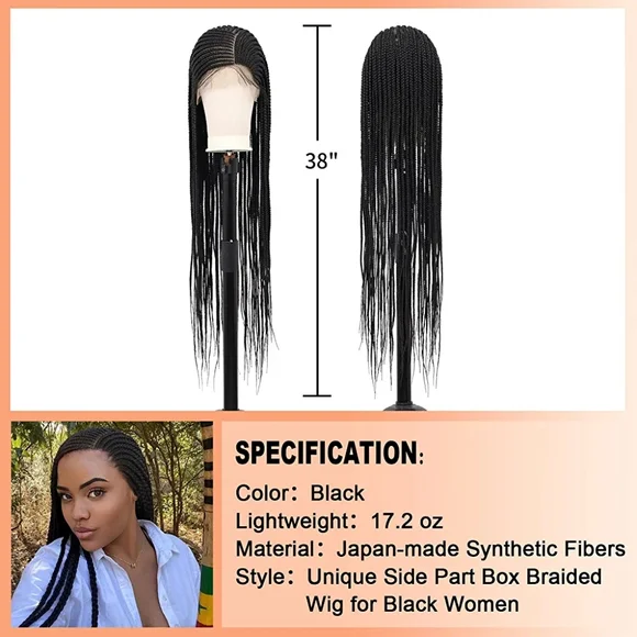 38 Inches Braid wig with baby hair looks very natural and the baby hairs are very flattering, creating a seamless hairline transition. The box braids are incredibly neat, the lace is the perfect light brown and the whole unit is super lightweight (17.2 oz). And as you can see, the lace gives SCALP. It's beginner knotless box braided wig friendly because you really don't have to do a lot to it except place it on your head.The back of the lace front braided wig was square knotless box braids, which allow you to style the braided wig in many ways for a unique look. Are braided knotless wigwig cap circumference 21.5"-22", ear to ear 13.5"-13.75", front to back 14"-14.5" which fits the most head size. The back stretches nicely and there is a comb at the back to anchor the wig. Side-part braided wigs for black women come with an adjustable strap and 2 buckles for a secure and snug fit.100% Hand-Braid Hair And Durable In Use