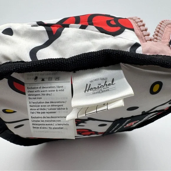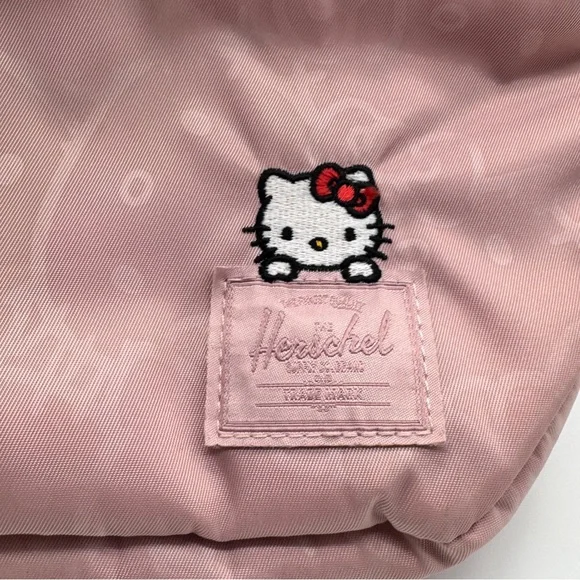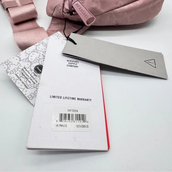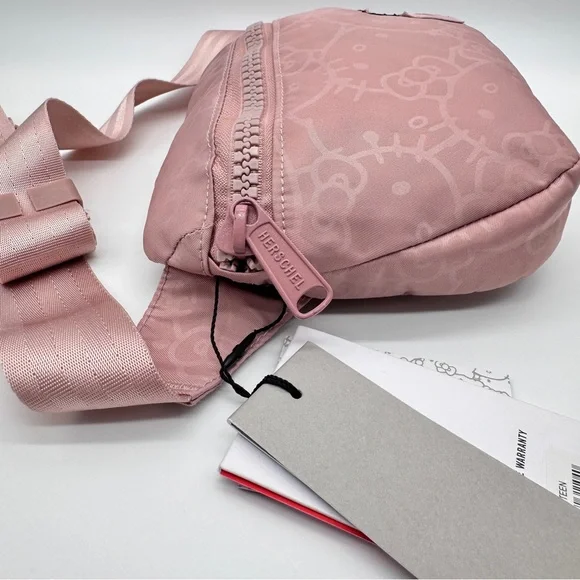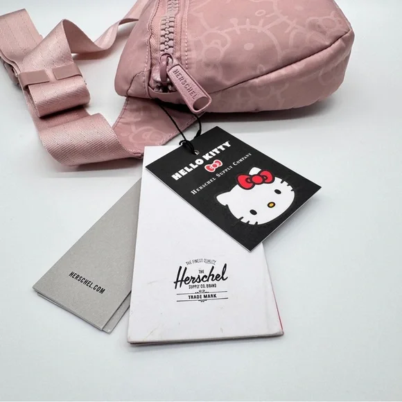Herschel x Hello Kitty Pink Pouch Bag Limited Edition Mauve Waist PouchSignature striped fabric liner. Adjustable strap with clasp closure. Woven logo label adorns front. 100% polyester. Volume: 2 L Imported. Measurements: Bottom Width: 7 1⁄2 in Depth: 2 in Height: 6 in Strap Length: 44 1⁄2 in Strap Drop: 22 in Weight: 5.6 oz Single zip pocket for your smaller essentials. From various fests across the land to weekend sojourns, stay stylish with the convenient Herschel Supply Co.® Fifteen pack! Compact and convenient hip pack can be worn around the waist or over the shoulder. This adorable Hello Kitty Fanny pack bag in pink is perfect for adding a touch of fun to your outfit. Featuring a cute Hello Kitty design, Inside and out. it's both stylish and practical for everyday use.BRAND NEW WITH TAG