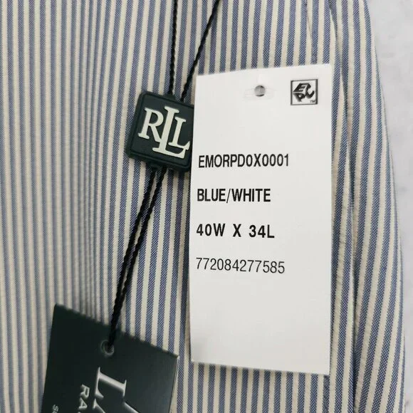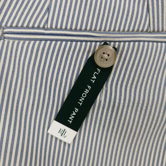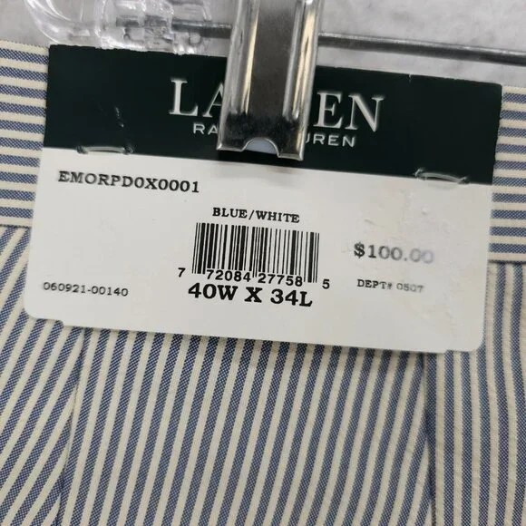 LAUREN RALPH LAUREN BLUE/WHITE CREAM STRIPED DRESS PANTSCONDITION: NEW WITH TAGS ATTACHEDSIZE 40X34 per tag, please check actual measurements belowApproximate measurements laid out flat, un-stretched:waist 20.75"inseam 34"rise 12.25"leg opening 8.5"Please contact us with any questions prior to purchase. Thank you!THANK YOU FOR SHOPPING AT COZY BARGAINS NJ!!
