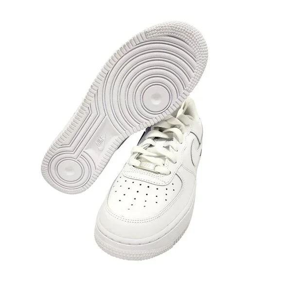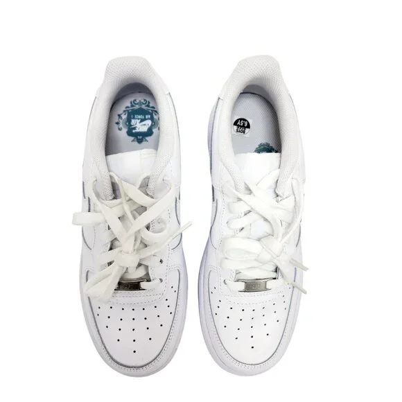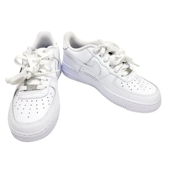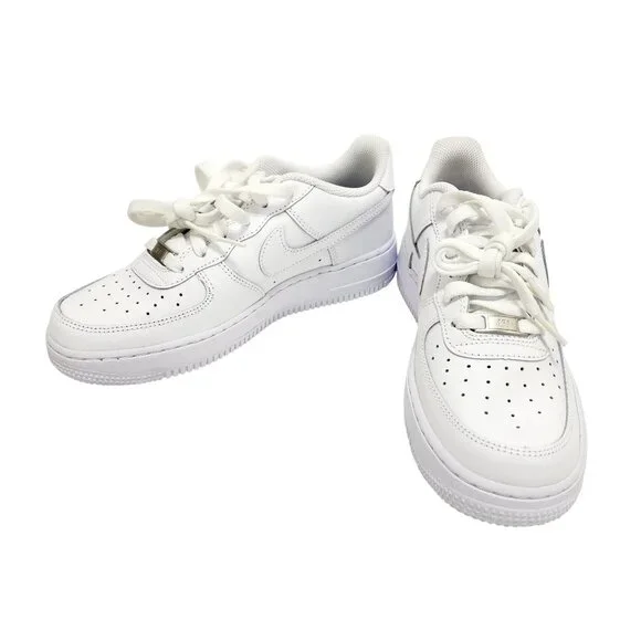 Crafted with high-quality leather for durability, these Nike Air Force 1 sneakers combine classic style and comfort. Ideal for casual everyday wear.• Iconic Nike Swoosh design• Perforated toe box for breathability• Cushioned sole for comfort• Durable rubber outsole• Lace-up closure for secure fitLight wear on laces, otherwise in excellent condition.Top to bottom = 11 inches.@2484morales