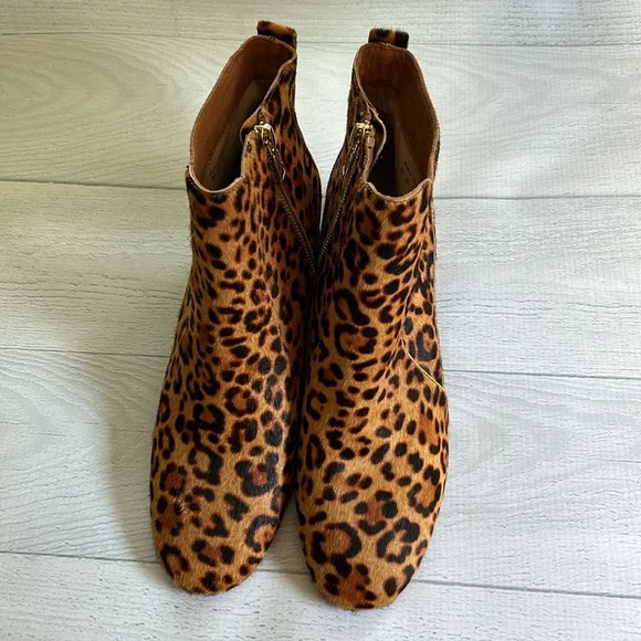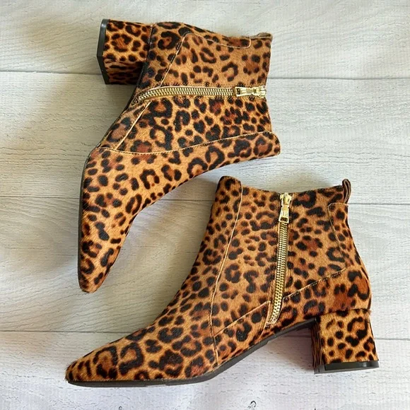 NWOT/New without Tags or Box/has mfr stickers on sole and never worn. Jack Rogers Berkley Animal Print Leopard Boots Women’s Size 9Calf hair/leather.Mid-height block heel.Rounded toe.Rear pull loop.Inner zipper.Leather lining.Rubber sole.2” heel height.