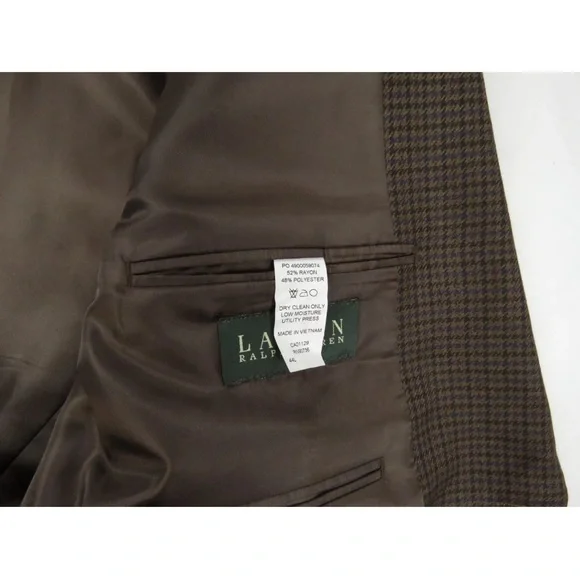 Description: NWOT Lauren Ralph Lauren LRL Brown 2 Button Blazer Sport Coat Jacket -Two button closure -Two front flap pockets-Left chest pocket-Single vented back-Four button cuffs-Notch collarSize (Check Measurements): Mens 44 LColor: Brown and blueFabric: 52% rayon and 48% polyesterCondition: New Without TagsItem#: 66956Measurements are in inchesArmpit to armpit: 22 3/4"Back bottom of the collar to the hem: 32"Shoulder to shoulder: 19 1/2"Shoulder seam to end of cuff: 26 1/4"BUYING VINTAGE·We do our best to thoroughly inspect all items for any visible imperfections i.e., rips, repairs, holes, stains, etc. and note as such.·Please note vintage sizes are not always comparable to today's sizing. Please refer to the measurements in the description for a more accurate depiction of the true size. If an issue should arrive, please contact us prior to leaving a negative as we strive for providing excellent customer service.Please compare your measurements to the measurements provided in the listing description to ensure a proper fit. 64572