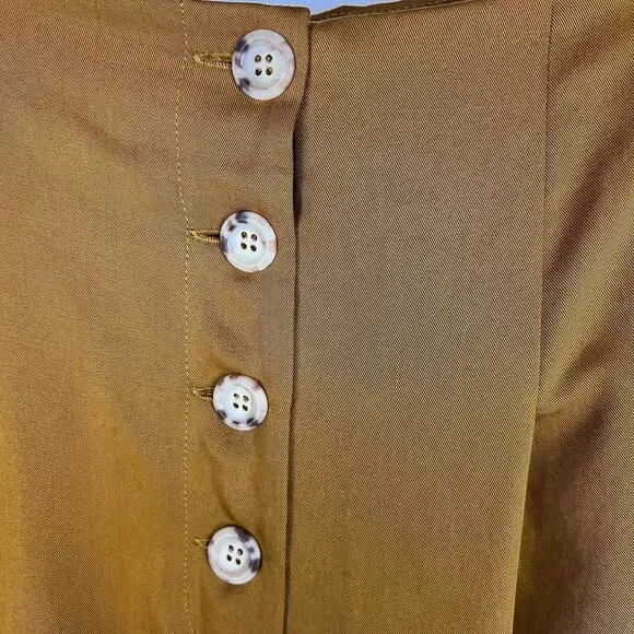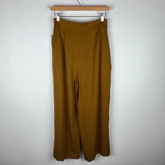 - New with tags- Gold/mustard colored wide leg cropped pants- 4 button fly- High rise- Side pockets - Adorable and trendy. An essential piece in your spring and summer wardrobe!- Size 4- Machine wash. 100% tencelApproximate measurements laying flat:Waist – 13.75”Rise – 14.5”Inseam – 24.5”Tags: office, business casual, career, job interview, event, classic, wide leg, dress pant, essential, versatile, normcore, minimalist, quiet luxury, coastal, trouser, pleated, tailored, sustainable, ethical, capsule wardrobe