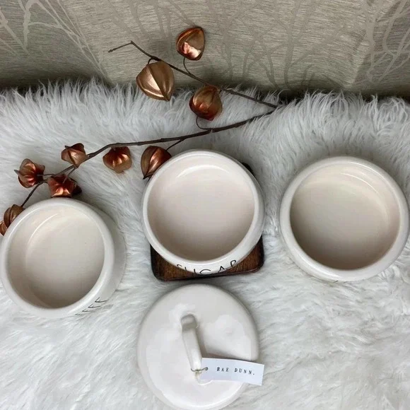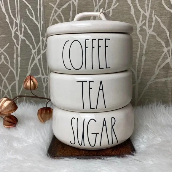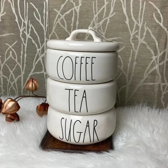 RAE DUNN NEW RD HTF STACKABLE CANISTERS CELLARS- stackable COFFEE TEA SUGAR- great home decoration for fall winter halloween thanksgiving christmas or everyday!- canister storage units you can store anything- Rare hard to find - NWT, new withtag- all items are sanitized prior to shipping- RD Farmhouse x Magenta M- Large elongated letters LLRae Dunn is known for it’s perfect imperfections, including marks, dents bubbles, kinks, and scratches. Every piece is unique and handcrafted that’s what makes these items one of a kind!Please ask any questions prior to purchase! all items are sold as is, no returns, exchanges or cancellations. Thank you! :) thank