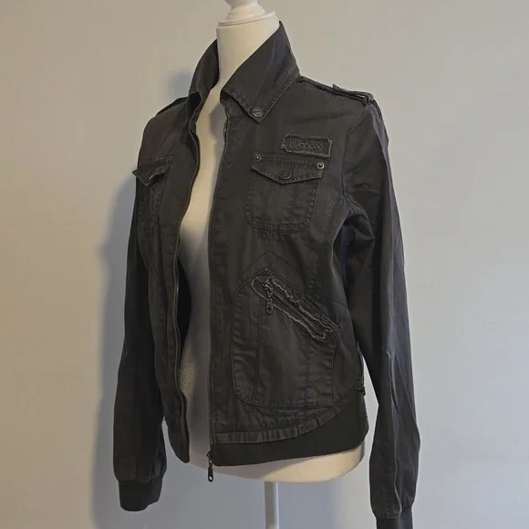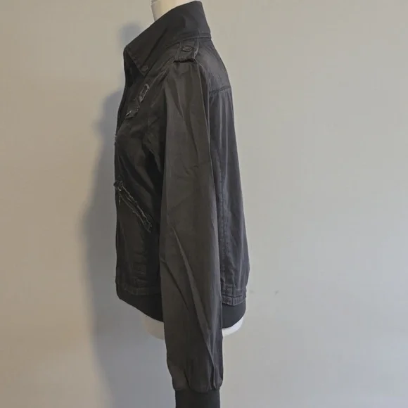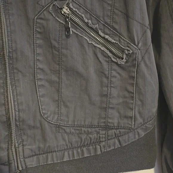 Stylish gray jacket perfect for any occasion. Features a sleek design with multiple pockets for convenience. Zippers and buttons all work perfect! Has the intentional signature "mend" stitch on the back lower right side and above the right breast pocket.Length:22inpit to pit: 20.5in
