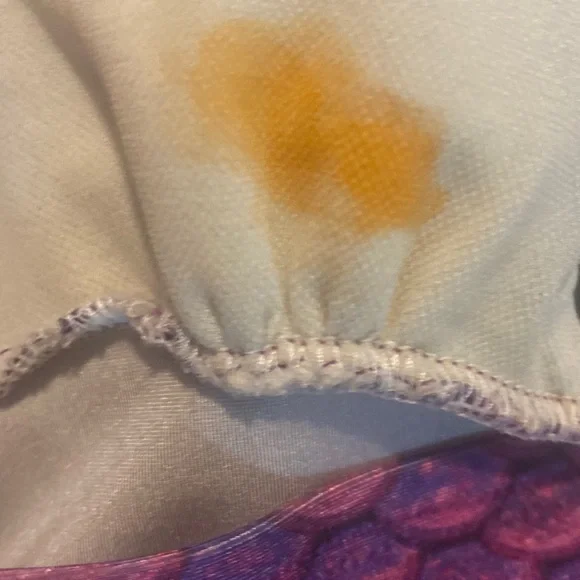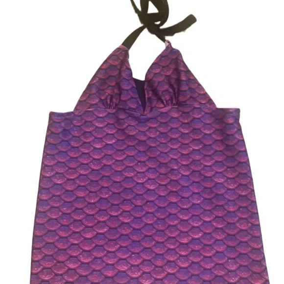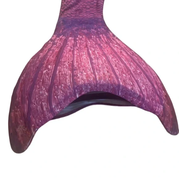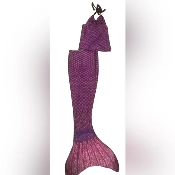 Dive into the ocean with this stunning 6T purple silicone mermaid tail! The tail is designed with a matching top, making it a perfect set for your little girl's next swim adventure. The tail features a unique mermaid tail style and is made with high-quality silicone material for a comfortable and durable wear.The top has a stain, which cannot be seen when worn. Aside from that, the set is in EUC. Paid $195 for this set brand new. The top comes in a vibrant purple color, making it a standout piece in any swimsuit collection. It is perfect for girls of all ages and sizes, and is sure to make a statement at the beach or pool. Get ready to turn heads with this one-of-a-kind mermaid tail set!