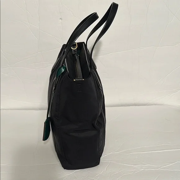Goldtone hardware adds a polished finishing touch to a compact nylon tote that's great for daily wear and perfectly sized for the essentials.• Top zip closure• Top carry handles; removable, adjustable crossbody strap• Removable key ring• Interior zip pocket• Nylon with leather trim9"W x 11"H x 3 ½"D (22.75 × 28 × 9 cm)5" (12.5 cm) strap drop; 20.5" - 23" (52 - 58 cm)