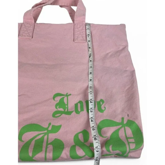 Vintage Juicy Couture Tote Bag Pink Green Y2K Juicy Sweet Couture Canvas RareNotes- please note, there was a modern reproduction of this bag style; the bag that we are selling in this listing is the original version of the bag from the early 2000s!Measurementssee photosConditionVery good vintage/used condition with a few marks at the corners/edges, not obvious when carried, and may come out with stain treating. There is also some minor tattering/small holes at the straps, not obvious when carried. Additionally, there is a faint stain at the pocket on the inside of the bag. Please see photos.We have a 1 business handling time which means your order will ship either same day or next depending on when you place your order (excludes weekends & holidays).